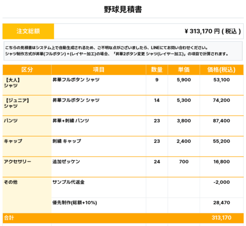 260119_KITABARA_ユニフォーム1st追加_野球見積書