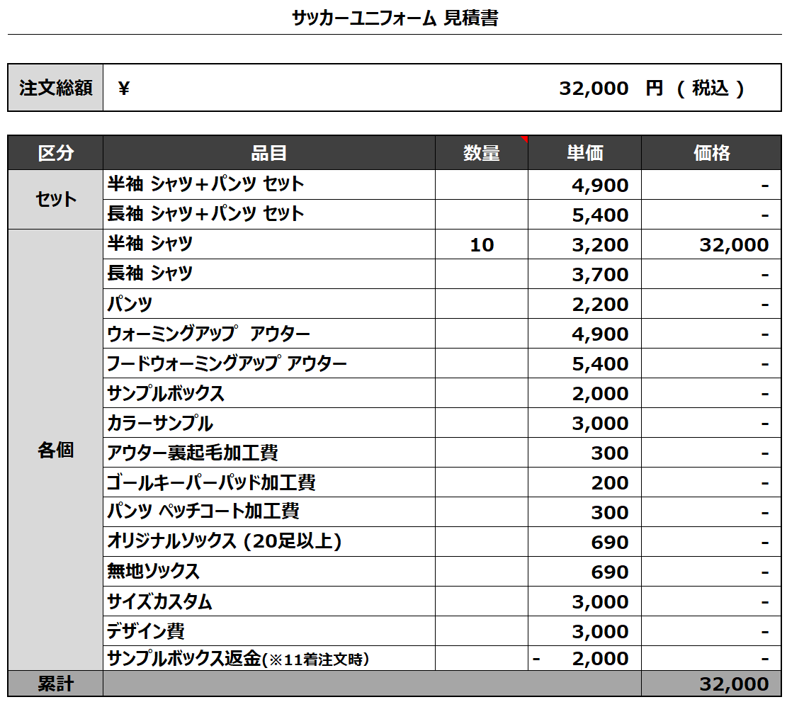 注文するユニフォームの最終デザインと見積もりの数量を確認ください。