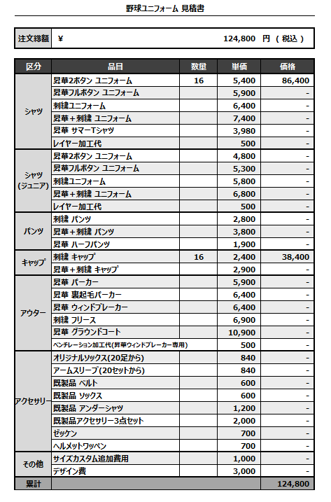 注文するユニフォームの最終デザインと見積もりの数量を確認ください。