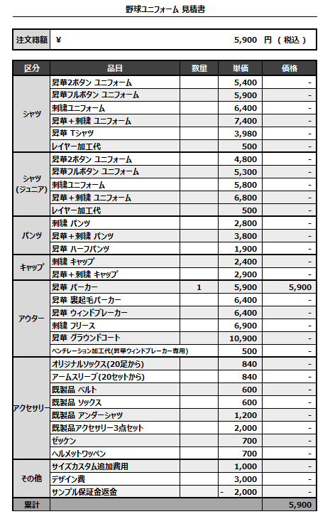 251029_HOKKOH PTA BASEBALL TEAM_昇華パーカー1st追加_見積書
