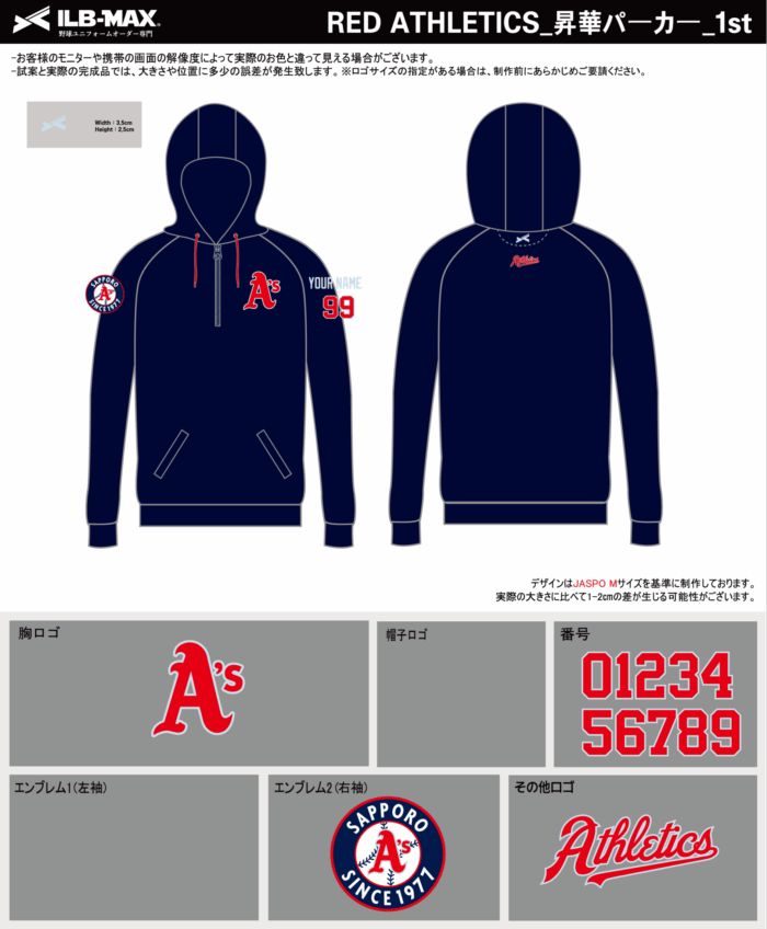 251121_RED ATHLETICS_昇華パーカー1st新規_野球見積書