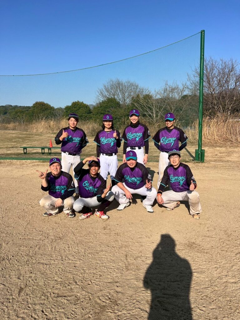 レビュー: 野球であまり見ない紫をベースにユニフォームを作りましたが、完成品は強豪チームに見えそう。実際は弱小チームなので、ユニフォームのカッコ良さに負けないチームを目指していきます。